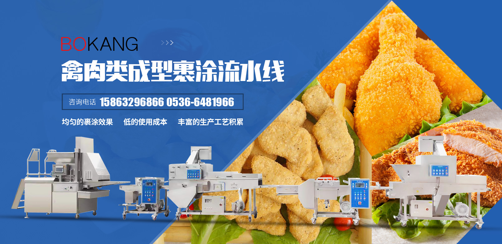 我們是一家生產(chǎn)預(yù)制調(diào)理類成型裹涂設(shè)備的廠家。為您提供產(chǎn)品裹涂解決方案。經(jīng)過多年的努力與革新,既可給食品工業(yè)的用戶提供生產(chǎn)線中的單臺(tái)設(shè)備,也可以提供多種設(shè)備組成的完整生產(chǎn)線。